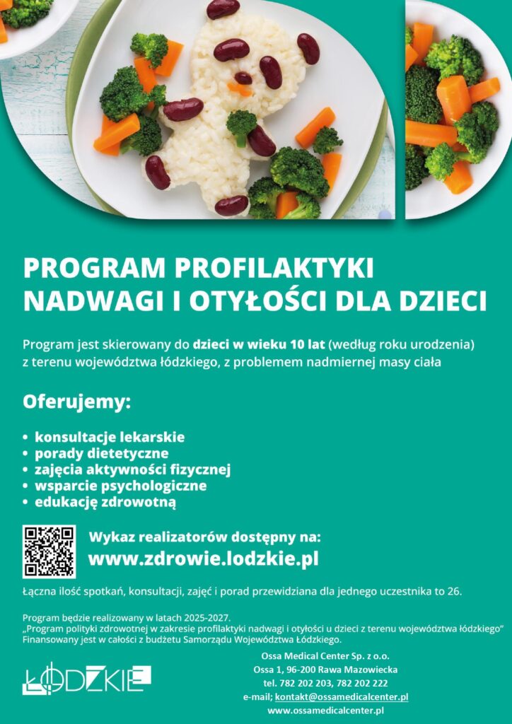Ossa Medical Center realizuje „Program polityki zdrowotnej w zakresie profilaktyki nadwagi i otyłości u dzieci z terenu województwa łódzkiego”, którego celem jest poprawna i rzetelna diagnoza, edukacja oraz kompleksowe wsparcie dzieci i ich rodzin w zakresie zdrowego stylu życia.